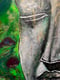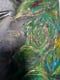 Green represents the heart chakra, abundance, peace and in this particular piece the rich inner world we all hold within. Under the surface we are both wisdom and richness, wildness and peace. This painting holds both, emphasizing the light that moves through us in the gold highlights.